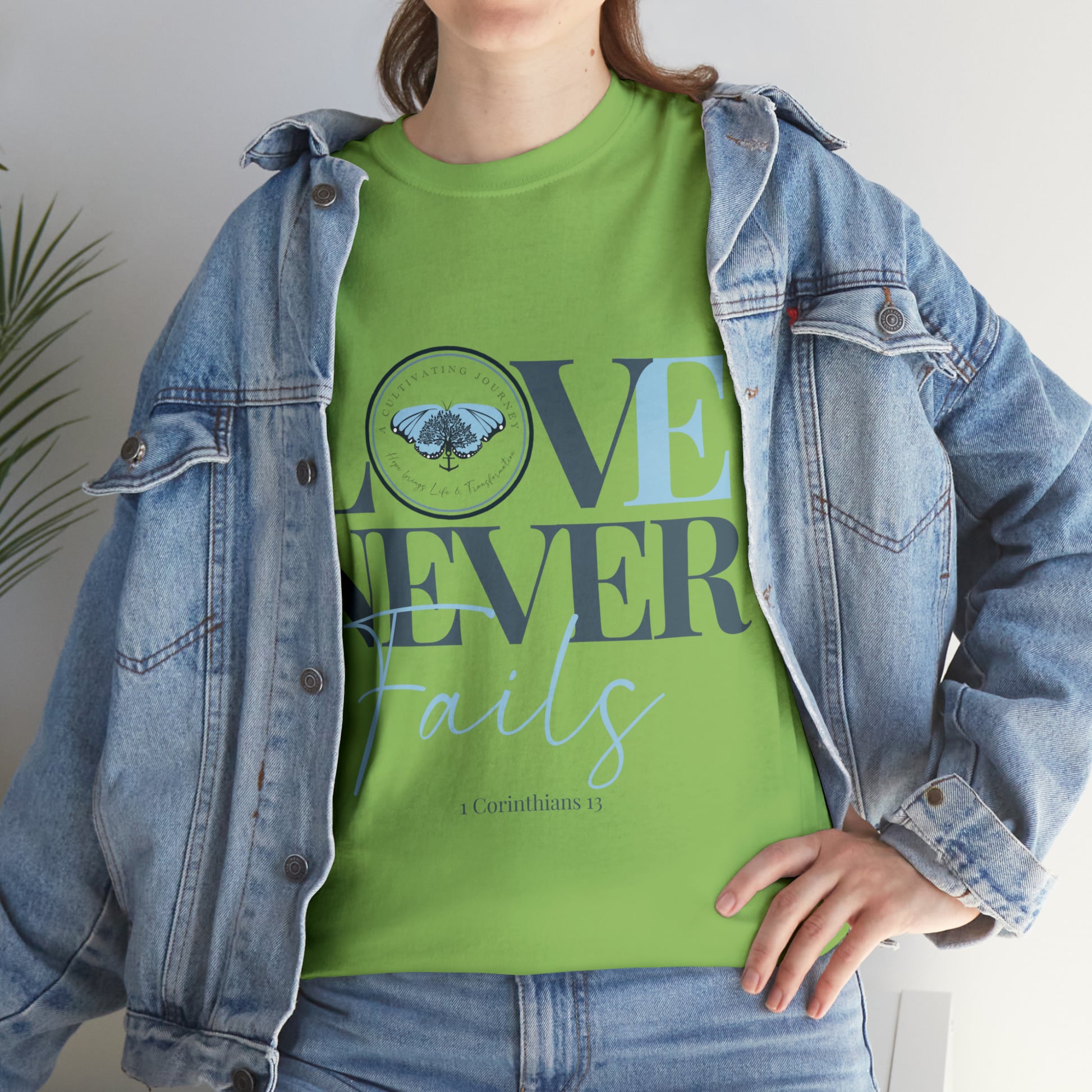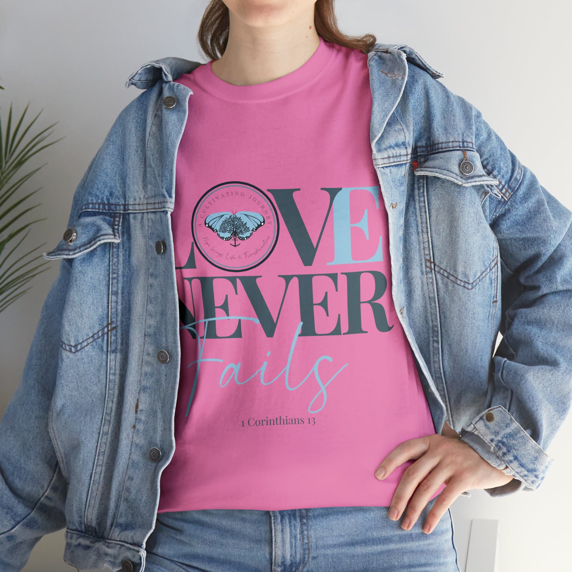 Love Never Fails ~ Comfy Cotton Tee/T-shirt ~ Inspirational tee ~ Christian tee ~ Motivational tee ~ A Cultivating Journey